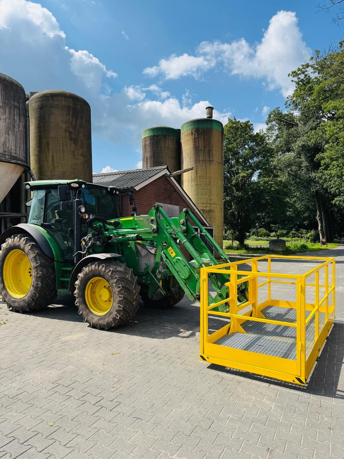 Voor dit project is een werkplatform ontworpen voor gebruik aan een verreiker en trekker. Het werkplatform is bedoeld voor het veilig uitvoeren van werkzaamheden op hoogte, zoals onderhouds- en montagewerkzaamheden op locatie. De constructie is voorzien van rondom gesloten leuningen en een antislip rooster, gericht op veilig en stabiel gebruik.