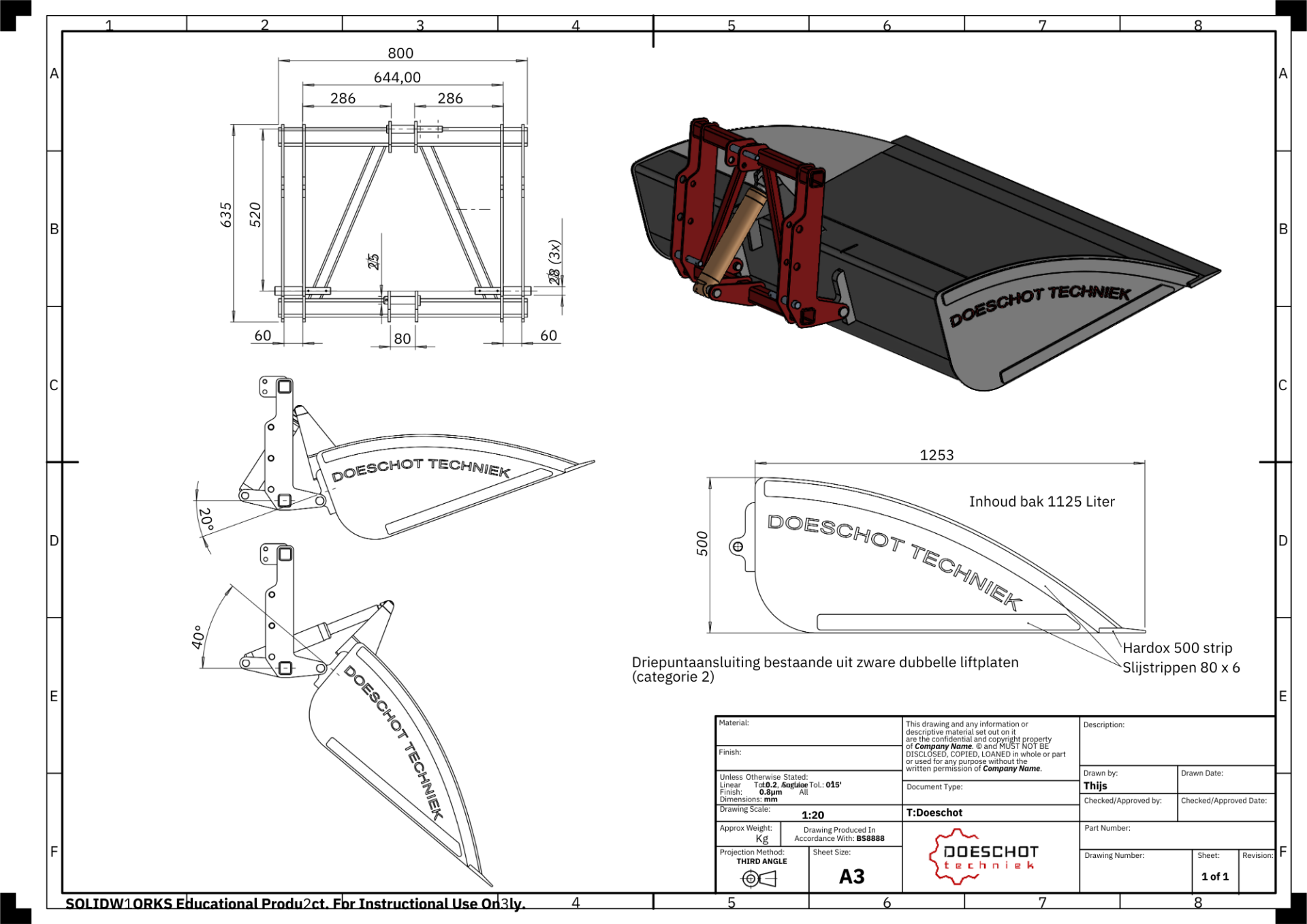 Het werkplatform is volledig in 3D ontworpen. Op basis van dit ontwerp zijn 2D-werktekeningen opgesteld, waarna het platform is geproduceerd en gerealiseerd door Doeschot Techniek.